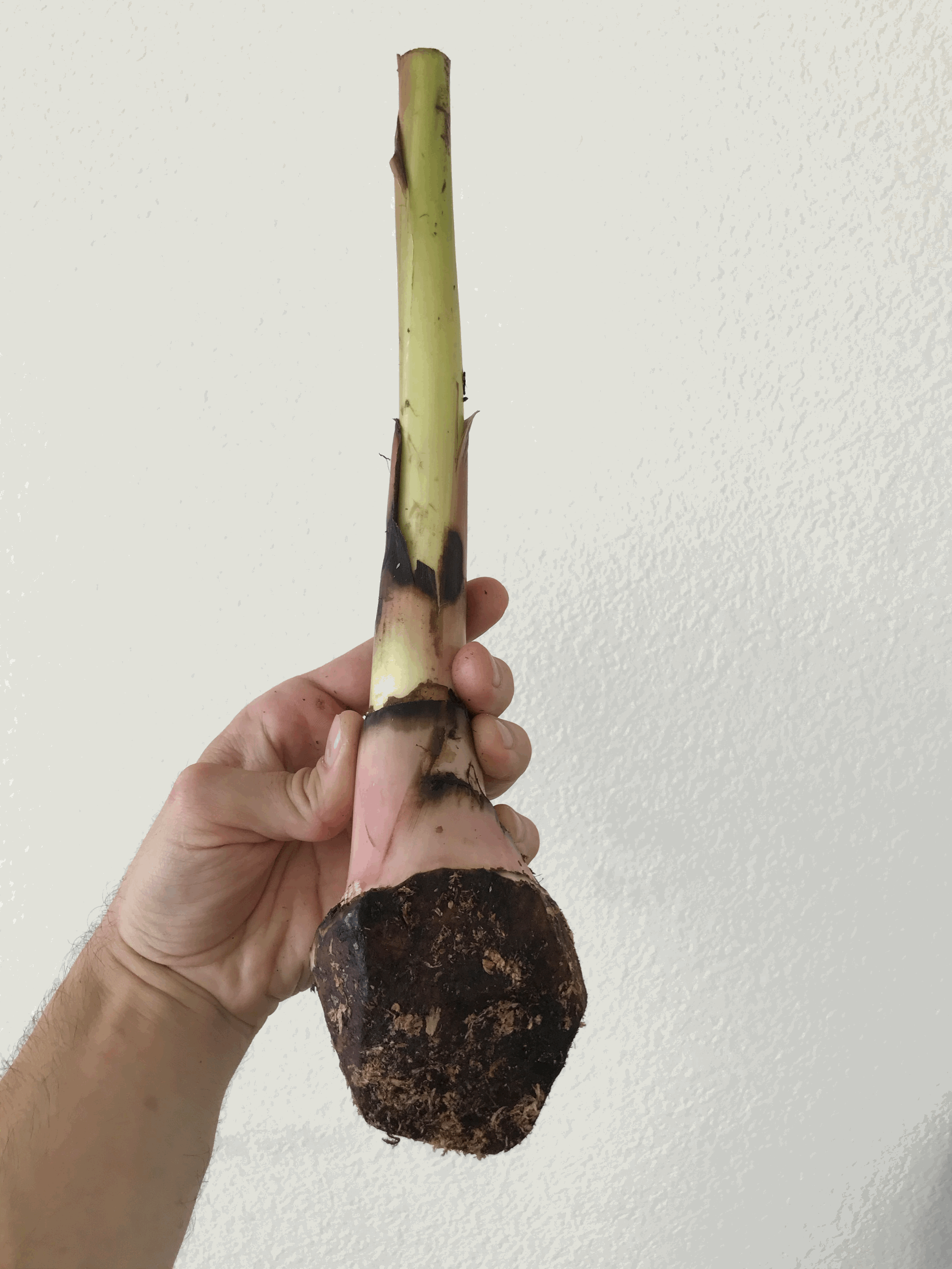 It’s standard practice for banana plants to be shipped without roots or leaves. The corm (the bulb-like part that lives underground) can store plenty of energy and nutrients to handle this type of treatment. The problem is that we need to provide enough moisture to stimulate root growth while ensuring that we don’t allow rot to set in. This is very similar to rooting a stephania - if you missed my post about that, you can find it here.