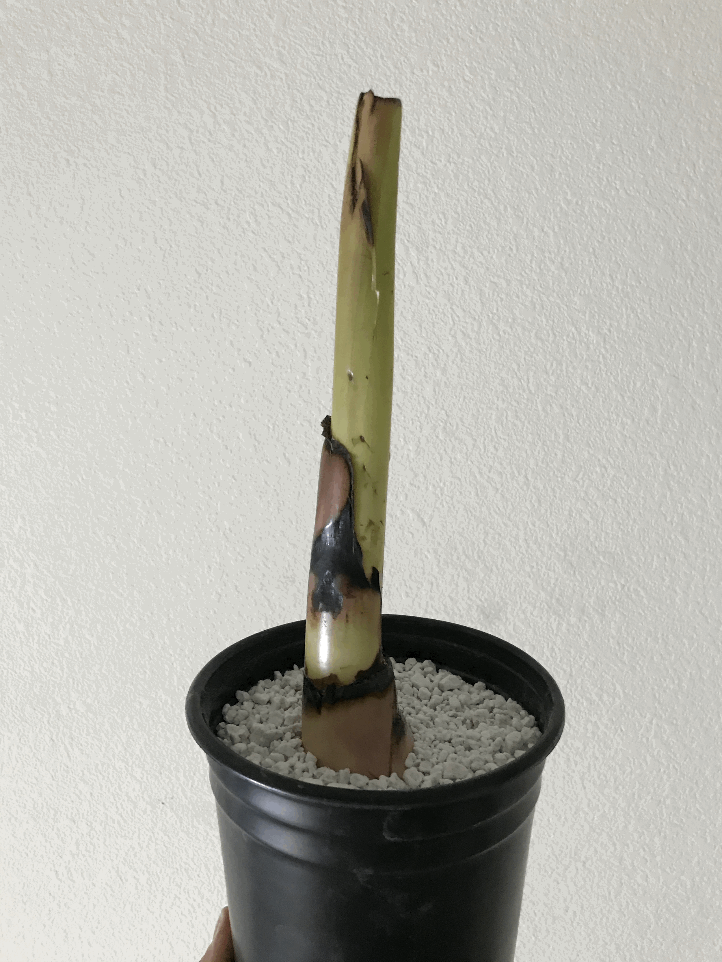 Warmth also really helps these tropical wonders root more quickly. Since they don’t have any leaves, they will use the moisture in the soil much more slowly than normal; this is why standard potting mixes can cause problems. Once established, musas can drink a lot of water, but in the beginning we have to be careful!